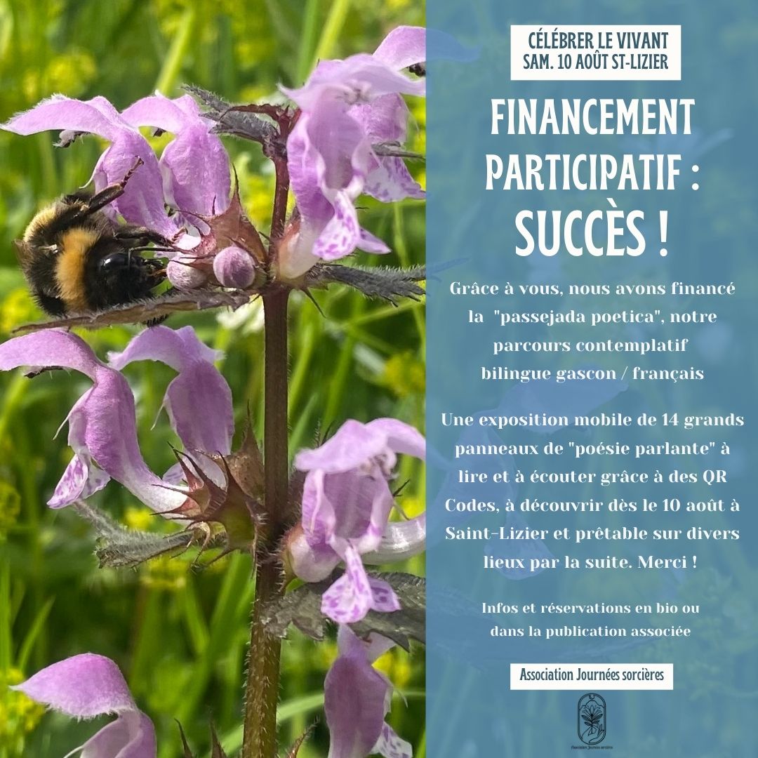 Nous l’avons fait ! Grâce aux généreuses contributions de nos donateur·rices, nous avons financé la passejada poetica. C’est une réussite ! La commande des panneaux est lancée. Nous les recevrons à temps pour la deuxième édition de Célébrer le vivant le samedi 10 août prochain à Saint-Lizier (Ariège).